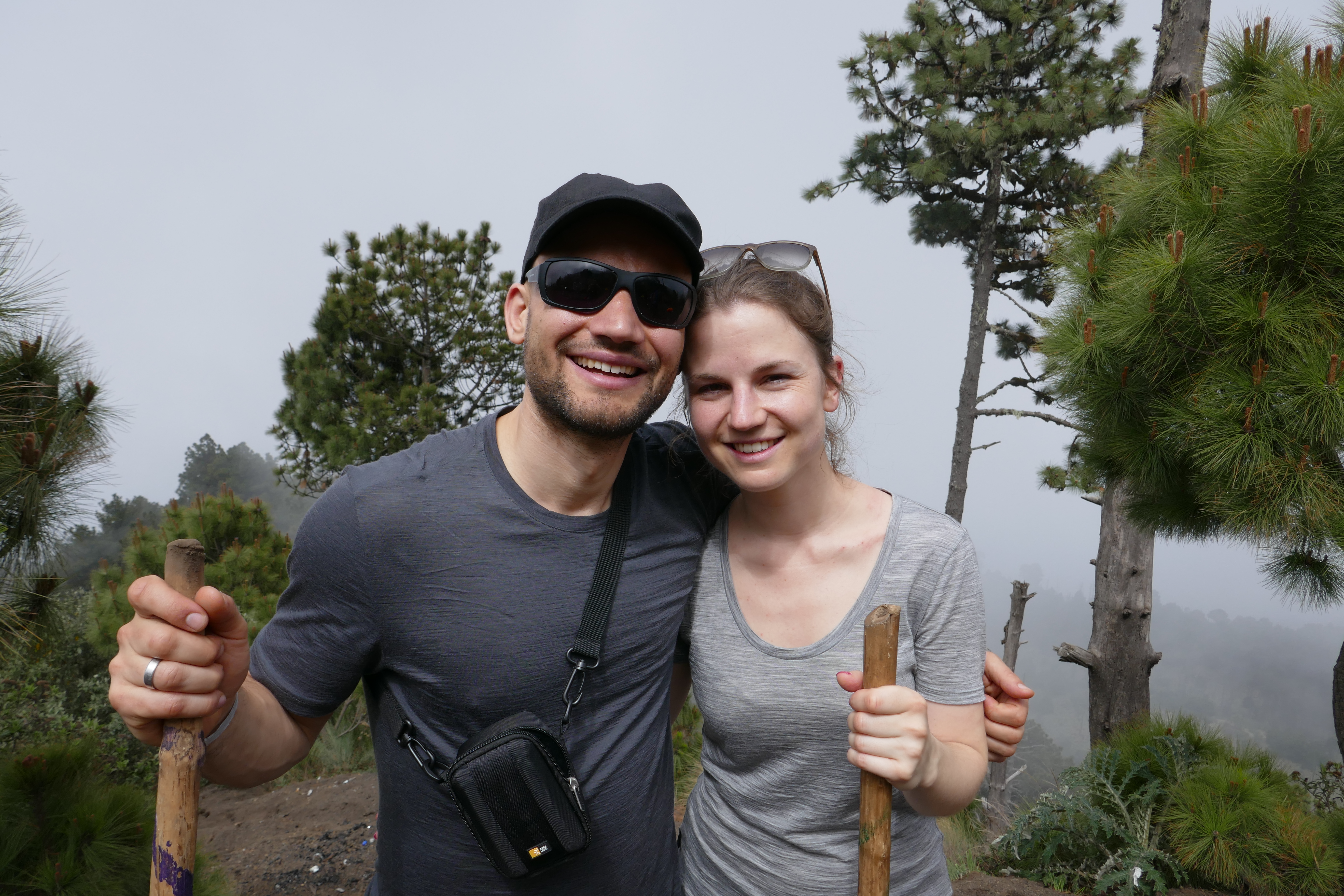 An unserem 2. Wochenende in Guatemala kommen 2 Freunde aus der Schweiz zu Besuch. Wir erklimmen zusammen mit den herzlichen Tourguides von „Gilmer Soy“ den Volcan Acatenango (3976 M.ü.M). Zelte und Schlafsack wurden im Basecamp auf rund 3600m schon bereitgestellt und wir können von der Touragentour noch zusätzliche Jacken, Mützen und Handschuhe sowie Gestöcke (sehr zu empfehlen!!) ausleihen. Am Abend haben wir Glück: die Wolken verziehen sich und wir haben freie Sicht auf den aktiven Volcan de Fuego: fast alle 15min. können wir so am Nachthimmel die Eruptionen mit glühender Lava beobachten! Dazu gibts eine reichhaltige Mahlzeit vom Feuer und zum Dessert heisse Schokolade und grillierte Marshmallows.
